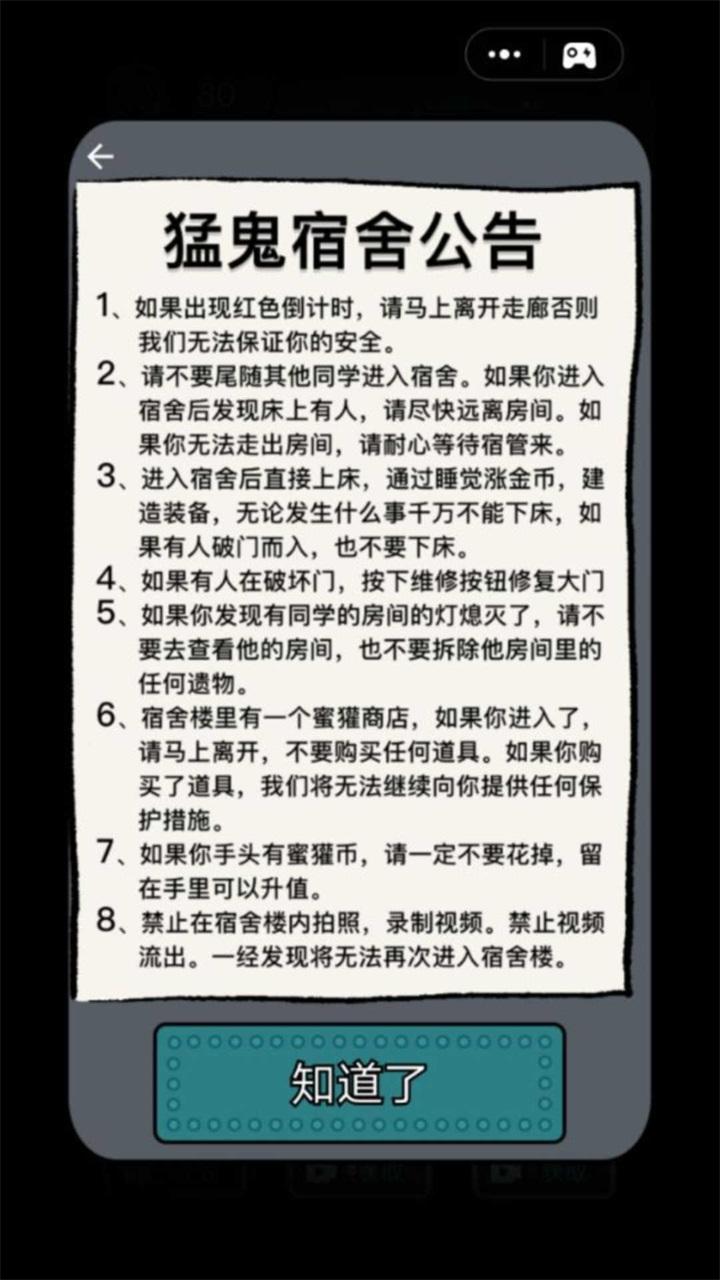 主战场就是宿舍,玩家需要赶在猛鬼到来之前布置好抵御猛鬼的防御措施。