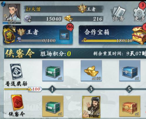 参与随机竞技场,每场胜利都可以获得奖励,胜利10场可以获得3个无双宝箱以及大量元宝奖励!