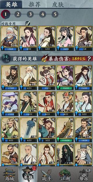 每位玩家首次进入游戏时,都会获得五个基础属性的英雄,但要成为传说中的大侠,这明显是不够的。