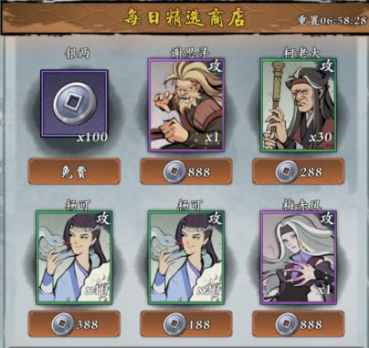 商店每天可以用银币买到其他英雄用来升级打怪,商店每天必刷!