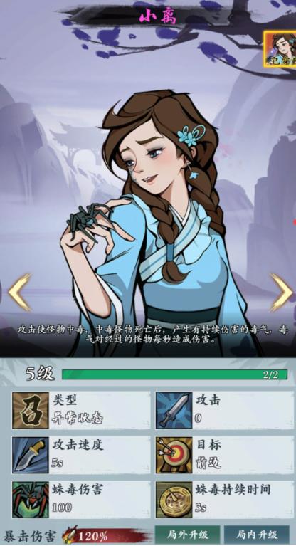 游戏中每个英雄都有专属的属性效果,比如小离能让怪物中毒、梅赤风有概率使敌人一击毙命、张三丰能使怪物的移动速度变慢等等。