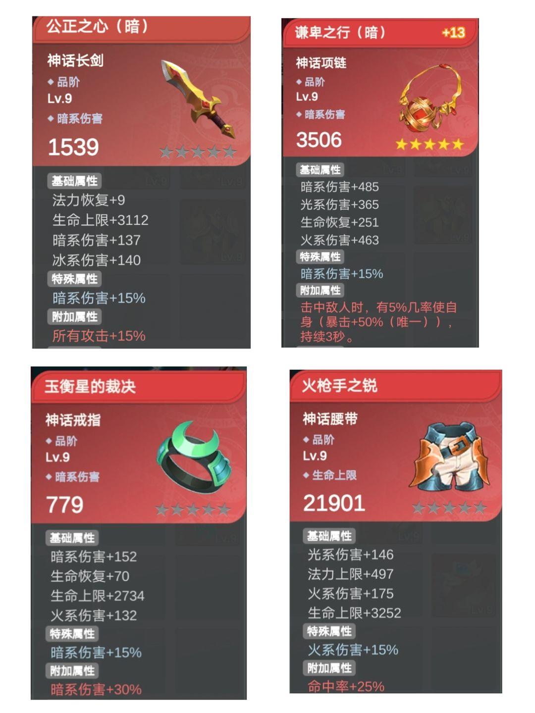 八个50级(增伤,减伤,生命,法力,暴击,爆伤,命中,抗爆)