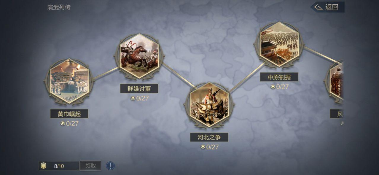 玩家可以在本玩法中体验到三国中的经典战役,并进行战斗。每一关有不同的成就需要玩家使用特定的武将或者阵容挑战完成。