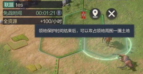 游戏中我们占领一个地块后,该地块会进入五分钟的免战期,大家可以理解成进入CD期。此时无法被攻占或放弃,但是可以在地块上进行扫荡、建设建筑等操作。