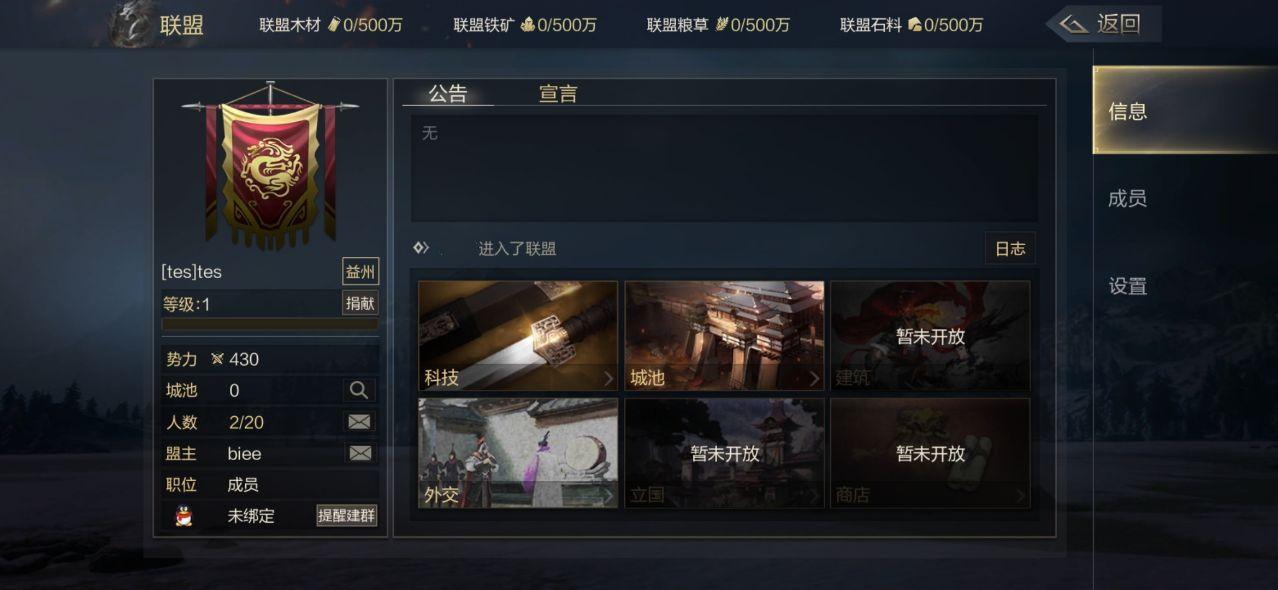 完成新手引导和任务后,就是发展和扩张,趁着新手保护期多占地,多积累资源,一边熟悉游戏玩法一边寻找加入合适的同盟。