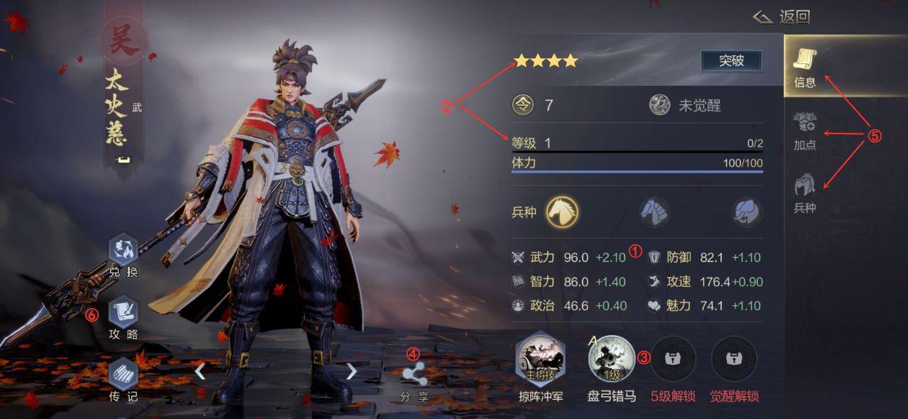 武将的基础六维属性,不同数值影响将领的战斗或内政属性。
