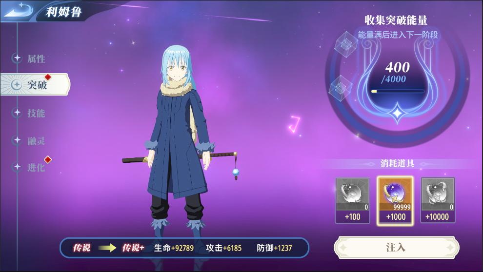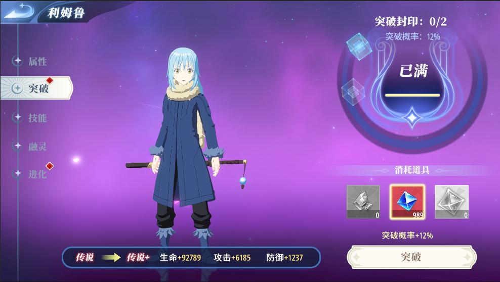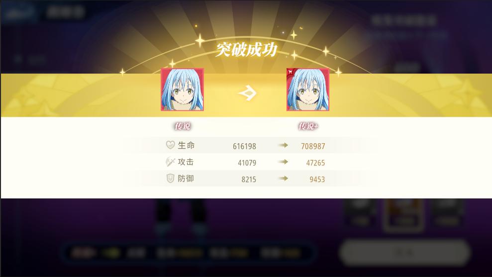 突破成功后,利姆鲁品质提升,并获得大幅属性加成。