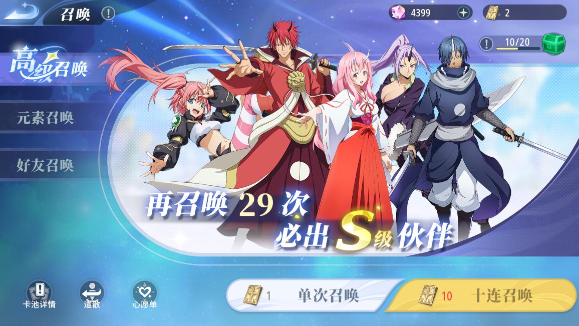 值得一提的是,高级召唤可以设置心愿单,抽到s级伙伴时,将有更高几率获得心愿单中的伙伴。