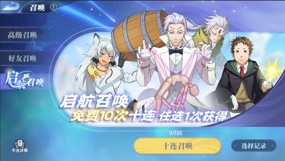 D. 启航召唤。建号后获得百连抽,能从中选择任意一次十连结果,运气与选择同样重要!