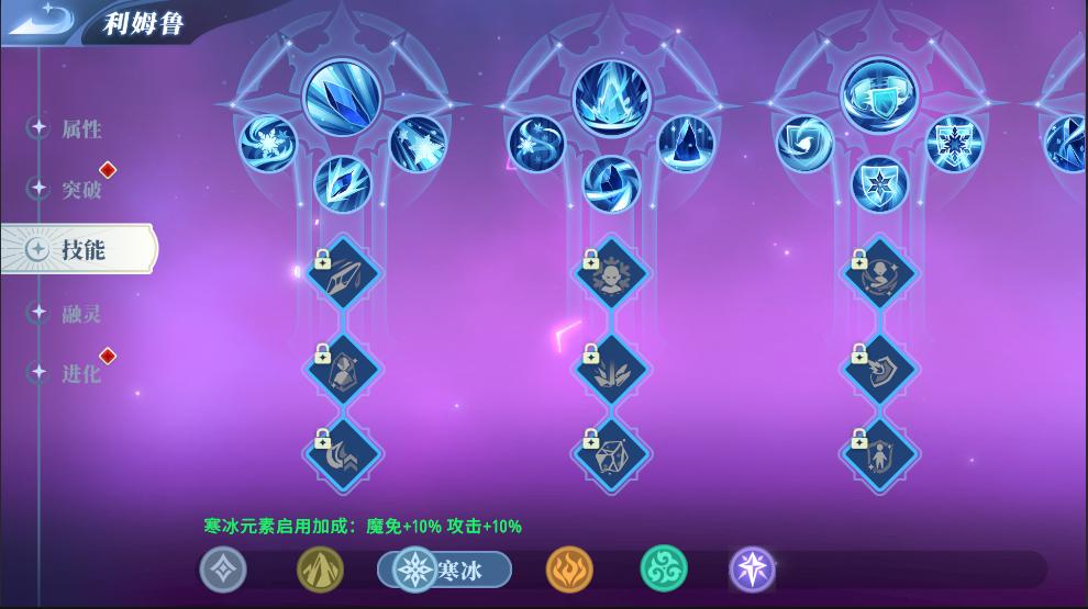 提供多个元素物品供培养,可增加所有上阵己方的属性,并提供利姆鲁必杀技。