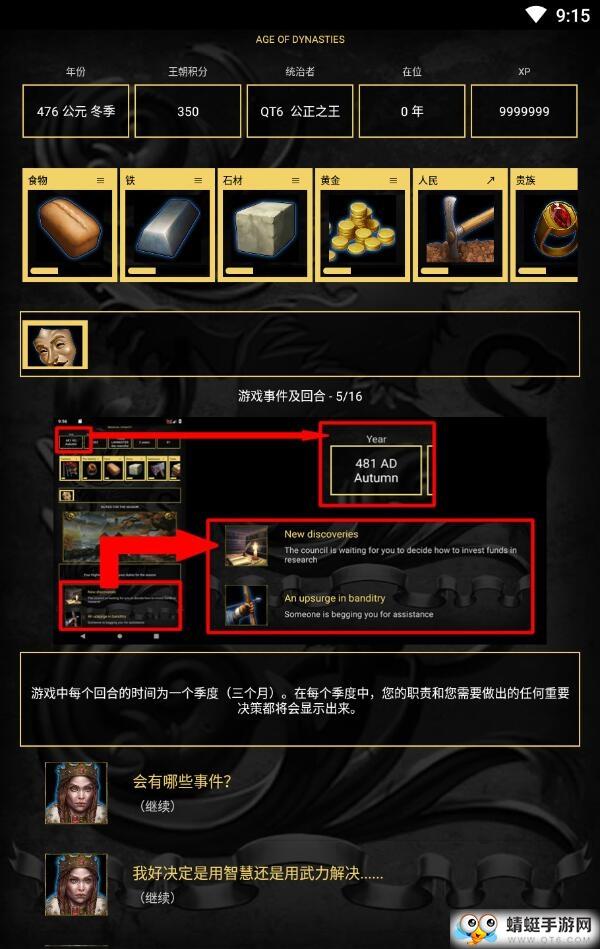 4、游戏采用回合制,在每个回合里,玩家需要做出自己的决策,你的每个决策都影响着王国的未来以及在位国王的寿命。