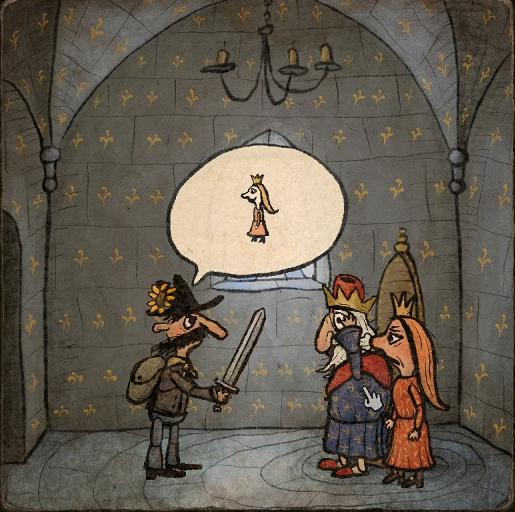 砍下它的頭,獻給國王,強盜於是成了新的國王,與公主過上了幸福的生活。