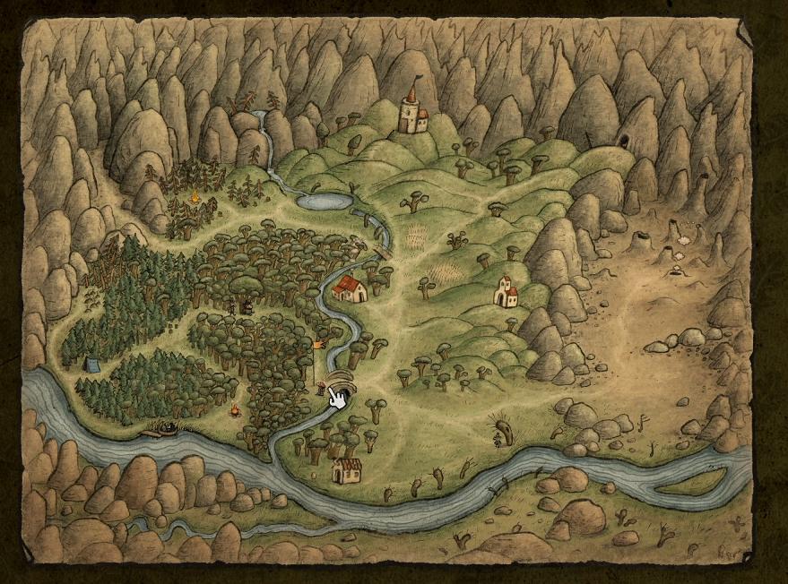3.把馬鈴薯給強盜吃之後,他會放你過路,遊戲此時解鎖全地圖。在吃飽之後,強盜還想喝酒,咱們得去幫他弄來酒。