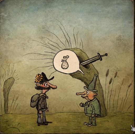 在我們拿到鑽石後,有兩個選擇,對應三個成就,如果直接把鑽石給商人,可以換取寶劍,或者我們可以把鑽石給國王,國王會獎賞我們一袋錢,用這袋錢我們也可以換取寶劍。