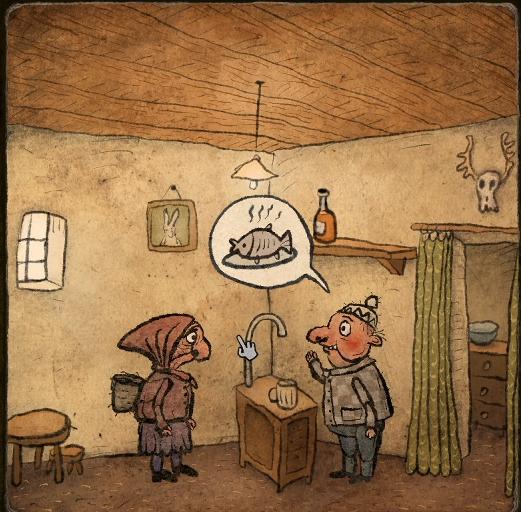 在解鎖完阿婆之後,我們不要忘了我們的任務是給強盜買酒,此時我們來到酒館,老闆告訴我們想要購買瓶裝酒,得拿魚來換,而釣魚則需要魚竿。