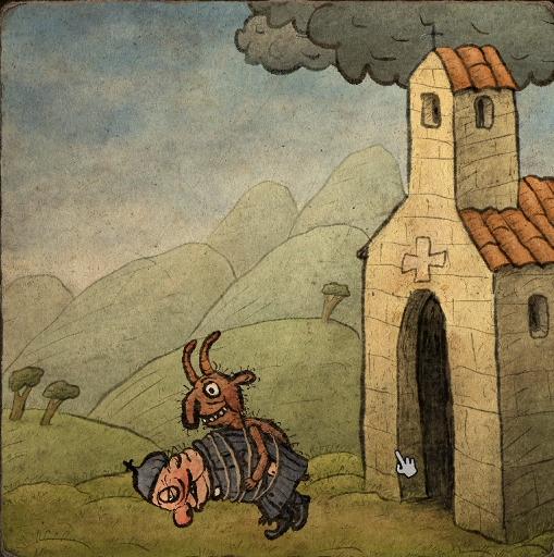 該路線的成就還沒有完結,之後我們再次來到惡魔的住處,發現惡魔與神父正友好相處,算是故事的後續,自動獲得成就“你的靈魂是我的了”。