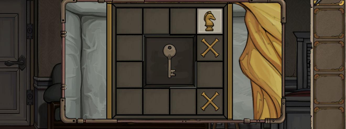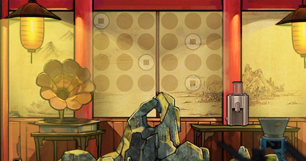 随后回到004房间,点击桌面,将铜币如墙面一样摆放在桌子上,即可获得【钥匙】。