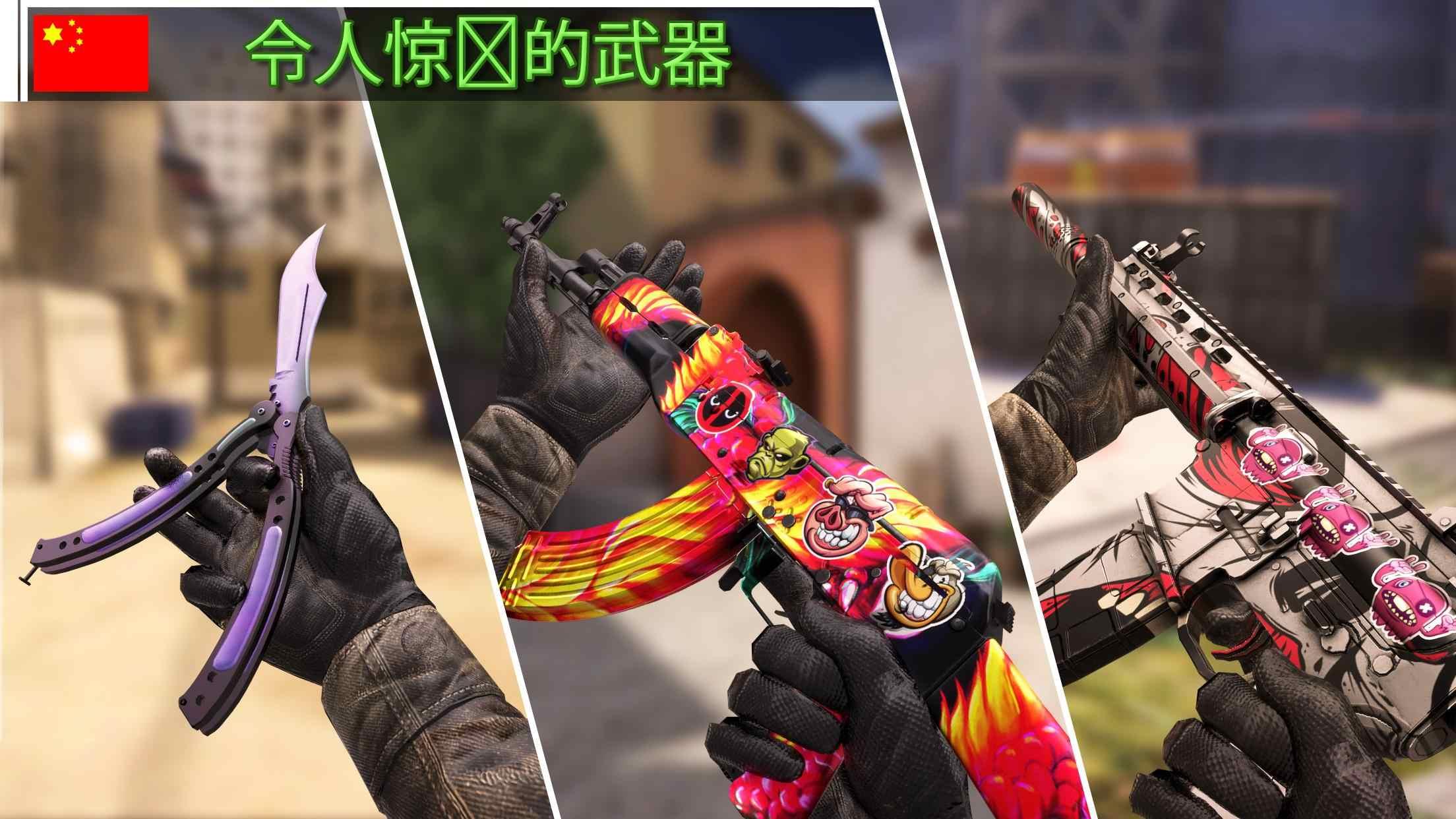 不同类型的武器和枪。包括Karambit,AK47,M4A1,沙漠之鹰,万能狙击,MAC10,TEC-9,还有更多!