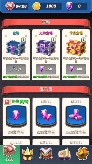 7.在商店还可以购买各种宝箱,这些宝箱需要花费钻石或钥匙进行购买。