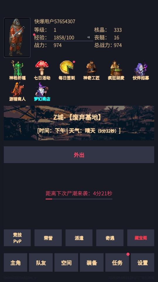 异境启示录游戏是一款末日题材的冒险类手游。玩家将进入一个被灾难和怪物侵袭的末日世界,作为少数幸存者之一,你需要在这个危机四伏的环境中生存、探索和战斗。通过搜集资源、建设基地、组建团队,逐步揭开世界崩坏的原因,并寻找重建家园的希望。