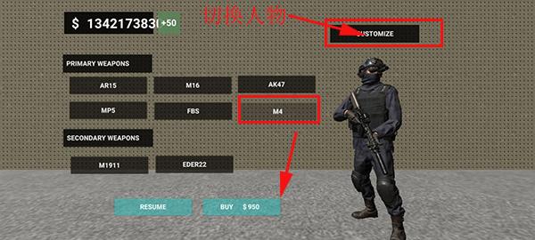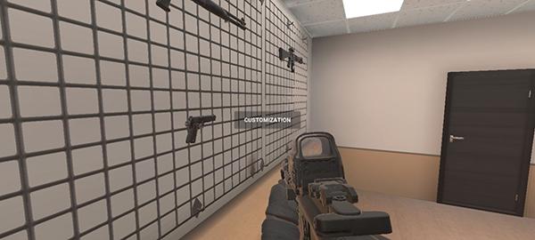1、进入游戏后,移动至武器墙面点击“customzaton”可进入切换武器,或切换角色服饰