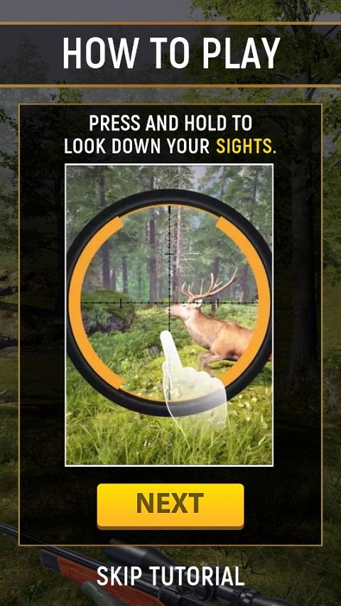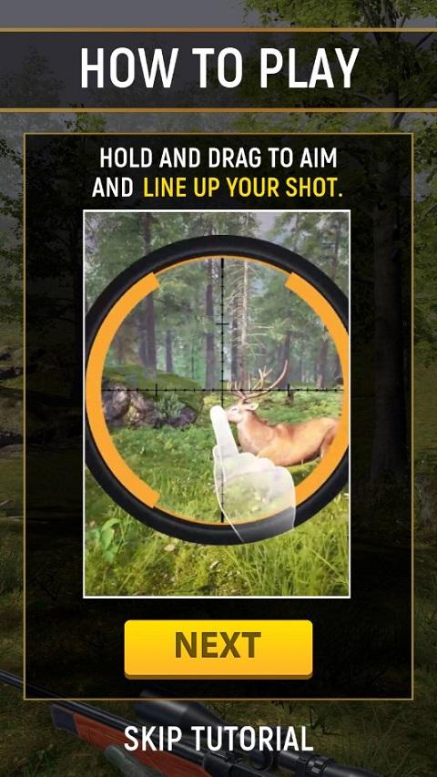 2、按住不动,拖动瞄准镜指向猎物的身体部位,松手即可开枪。