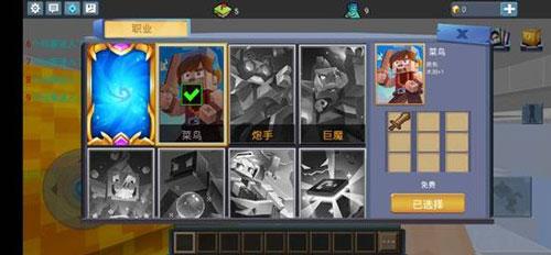 进入游戏后,我们可以对自身的职业进行选择,不同职业拥有的道具是不一样的,刚开始我们只能选择菜鸟职业,其他职业需要解锁才能使用。