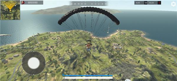 7、下来之后控制虚拟键让人物进行移动,并拾取地图的枪械武器来消灭其他对手;