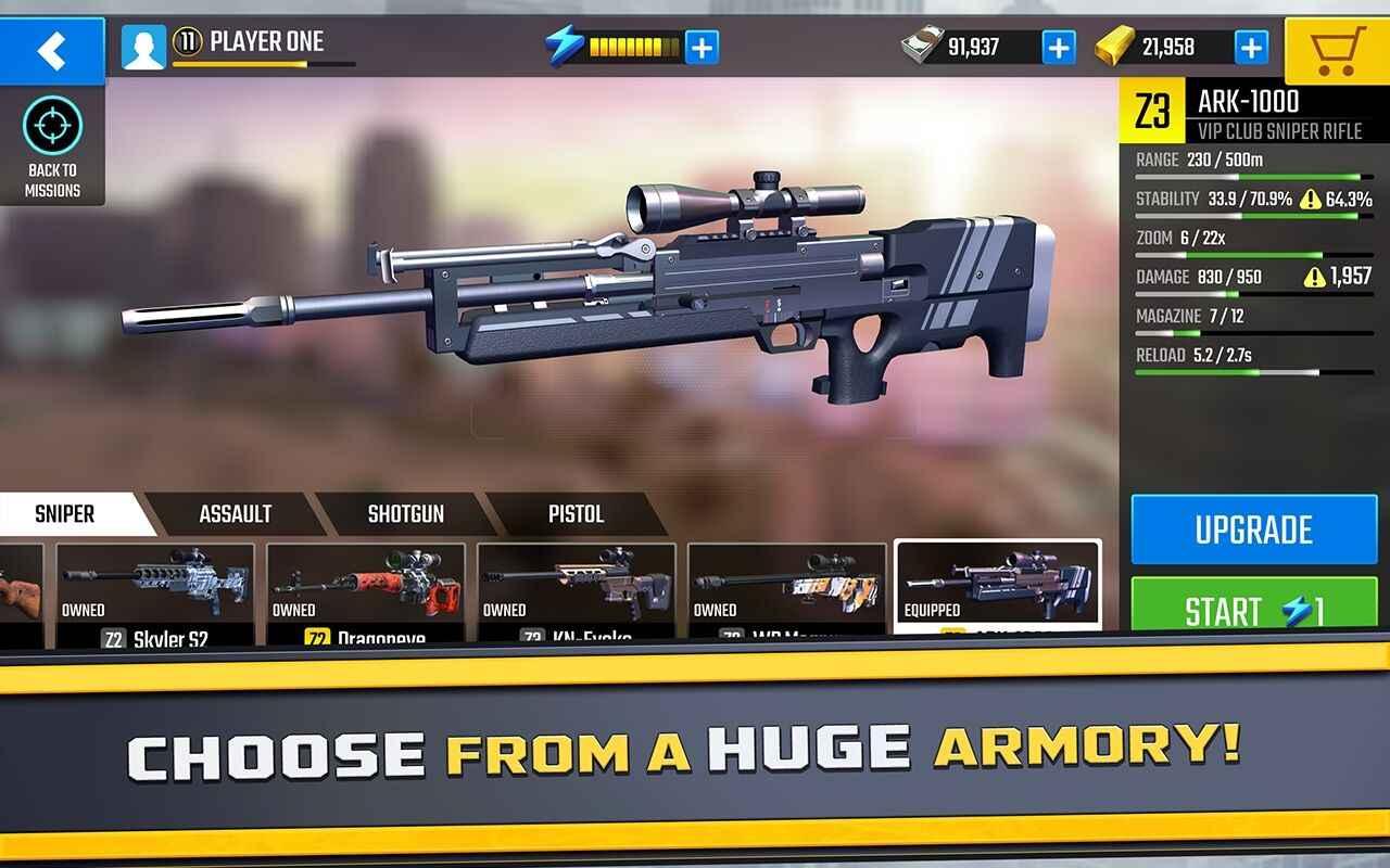 3、数百个令人兴奋的任务准备好新内容,体验数百种不同类型的狙击步枪,