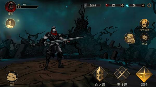 6.进入游戏后可以选择三种模式:血之塔.竞技场和冒险三种模式。