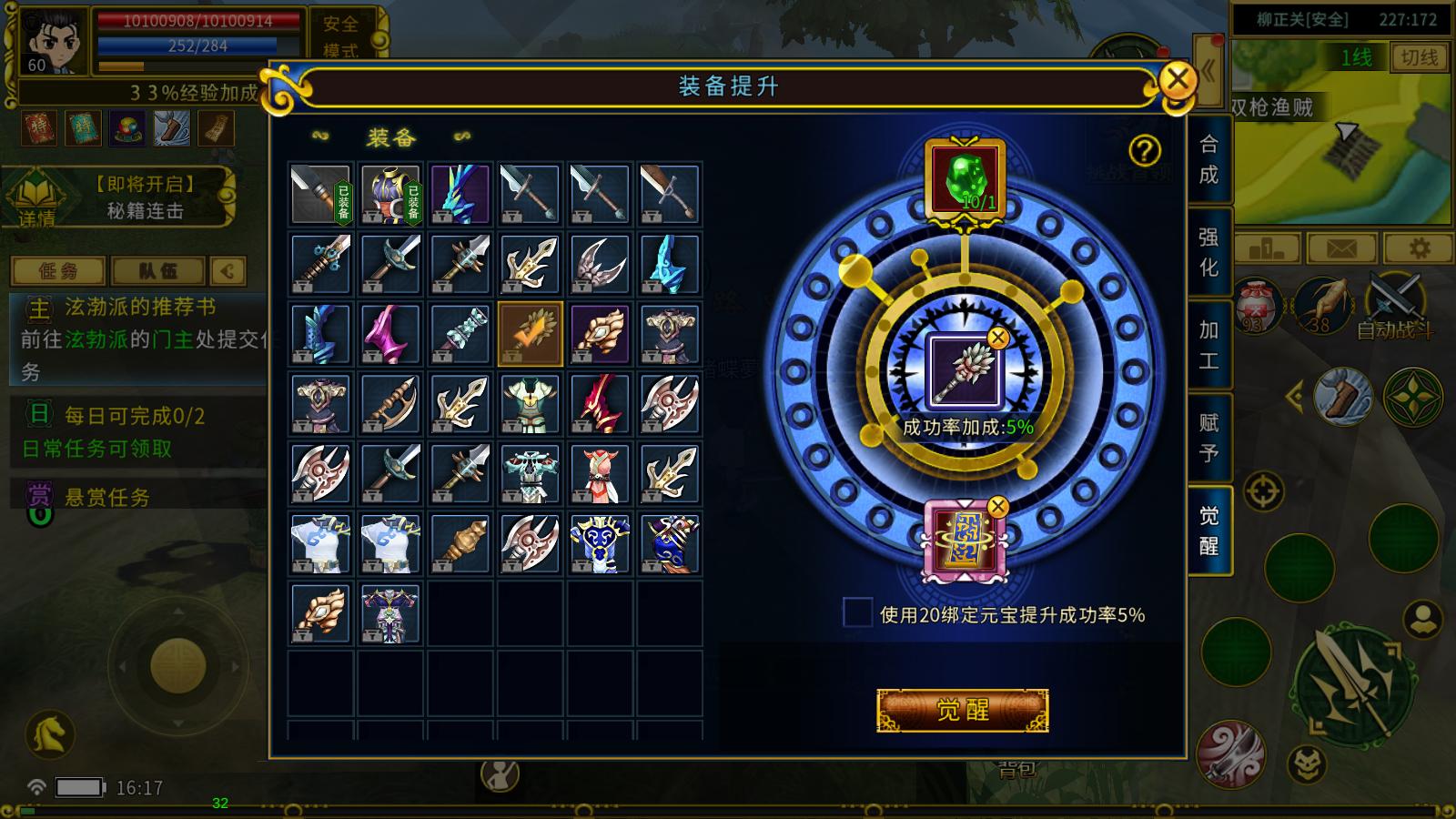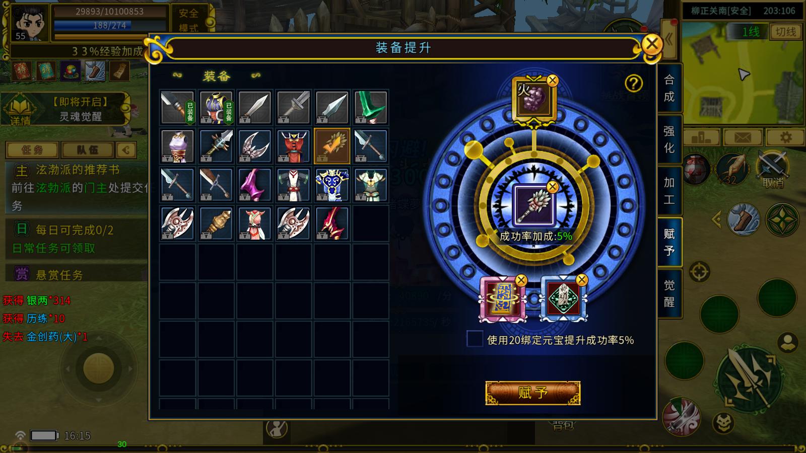 1.使用初级集魂石对装备进行灵魂觉醒,将奇玉石的特殊效果附魂到装备上。