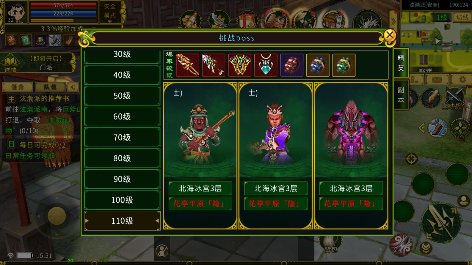 江湖是危险与宝藏并存。讨伐野外精英、副本BOSS等来获取武林秘宝。大侠在达到30级后即可开启BOSS副本挑战。