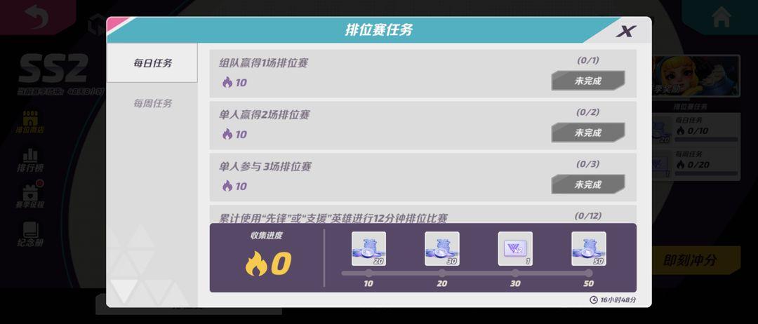 1、排位赛任务即将全面升级!新版排位赛任务会给选手们提供更多的每日和每周任务,奖励也更加丰富,排位奖章、双倍积分卡、金币还有排位赛护盾等;