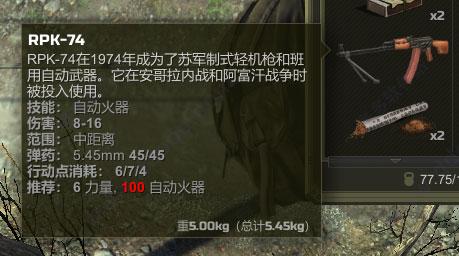 推荐枪械:RPK-74.这把枪使用5.45子弹,数量要多于7.62,而且5.45好枪不多相对于7.62子弹积存比较多,在非生存模式,并且不差钱的情况下是队友的首选。