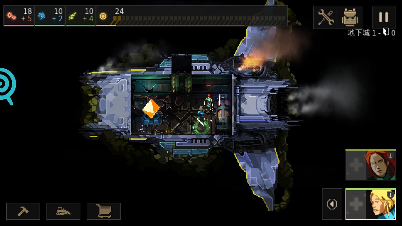粉尘:这游戏以回合制驱动,每打开一扇门就是一个新的回合,每个敌人只会在回合开始的时候,在黑暗的房间内刷新,那么房间为什么有的是黑暗的,有的不是的呢(有的房间会自带电力,绝大部分房间是没有的)双手在屏幕进行缩放,可以看到总布局图,这个深蓝色代表房间是没有通电的,通电之后会变成亮蓝色,亮蓝色我们给他建造以后就会变成绿色,可以通过地图颜色来了解这个地方是一个什么样的状态,能否给房间通上电取决于粉尘资源,粉尘只能通过特殊房间、事件、击杀敌人的时候获取,每获取10点粉尘可以点亮一个房间。