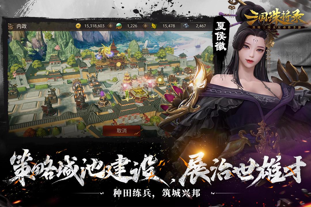征战黑暗三国战场,不只打打杀杀,所谓兵马未动粮草先行,《三国诛将录》新颖的城建玩法,支持玩家多渠道养成武将。玩家在成为城主后,可大施拳脚进行主城建设。招募、升级武将,建造农田、练兵场实现资源自给自足,战力提升快人一步!创意融入的策略建设玩法,让玩家运筹帷幄,谋而后动。届时还可发起城镇征伐战,讨伐各方诸侯,安定天下。