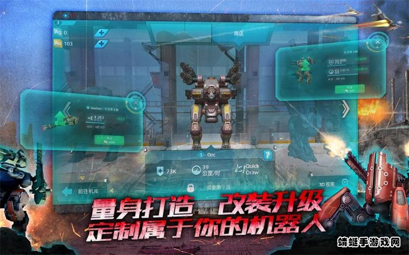 定制。每一个机器人都可以配备你选择的武器和模块。找出你最喜欢的组合,让大家见识见识你的威力!