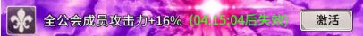 4、消耗公会增幅令或钻石可激活或提升公会全员增加攻击Buff效果,最大可增加到20%的攻击力加成,每个Boss击杀奖励每个角色只可获得1次,更换公会重复击杀只获得保底奖励;