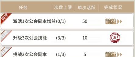 1、每天公会有日常任务和每周任务,完成可获得活跃点;