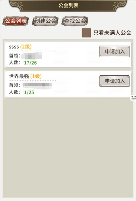 1、当到达18级即可解锁公会系统,玩家可在公会列表申请加入公会,也可以自己创建公会;