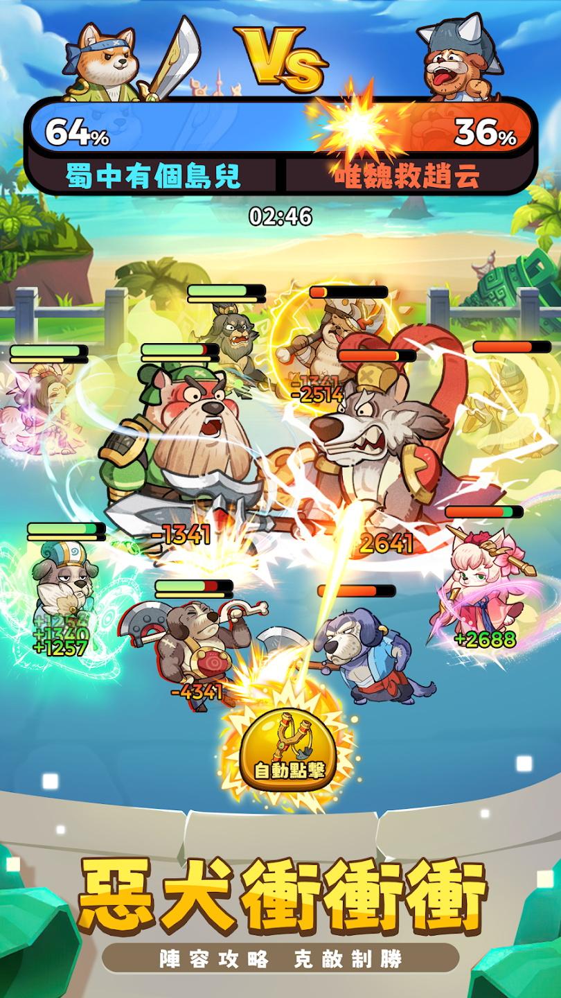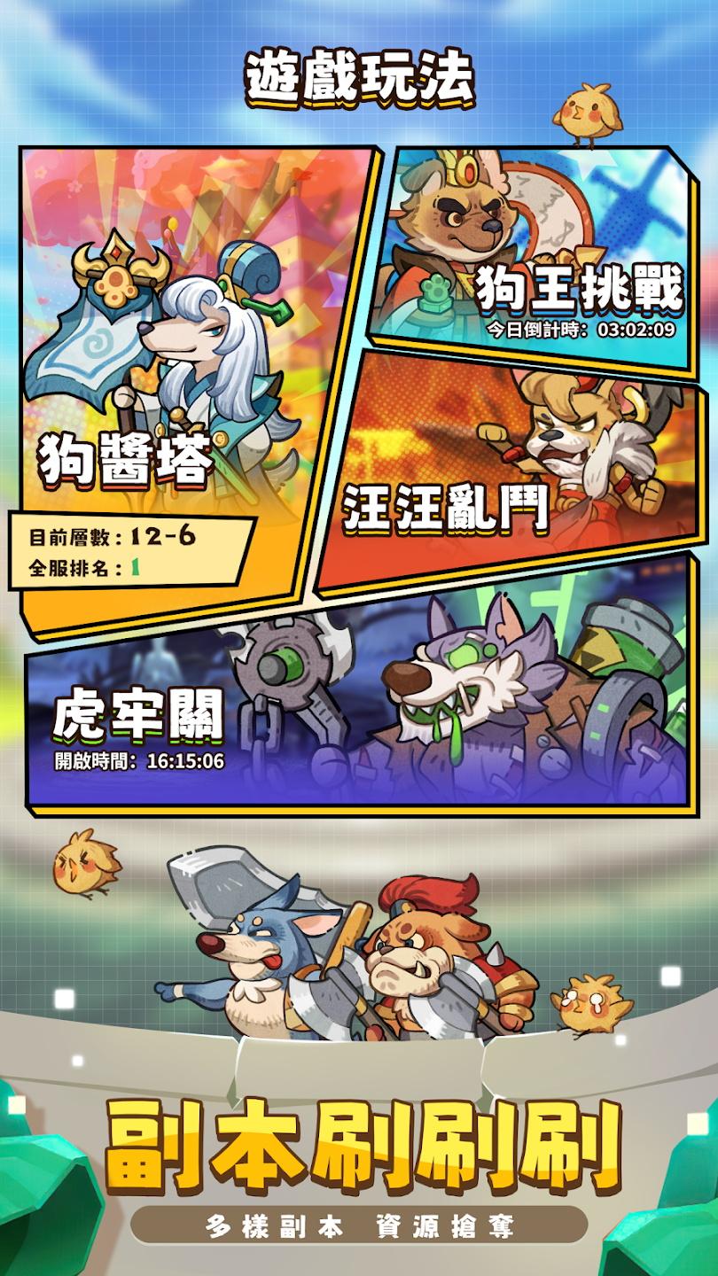 这个三国汪汪叫是一款画风非常可爱的三国题材放置冒险游戏,全新的玩法设定,这里的角色都是各种可爱的狗狗形象,您可以培养自己的三国英雄,进入到副本中刷资源,提高角色的实力,游戏有吵丰厚的实力,挂机也能获取到超多奖励。