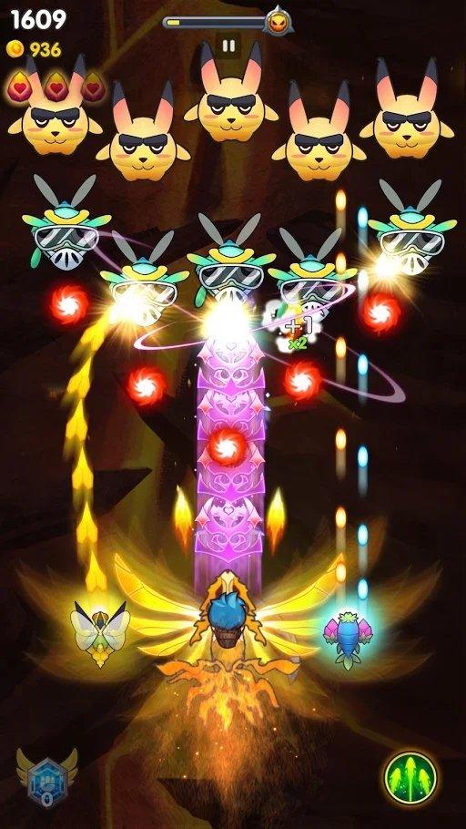游戏中有着超多的关卡供玩家进行挑战,不同的关卡内会有不同的boos供玩家挑战,需要玩家操作着最绚丽的战机,战胜更强大的敌人