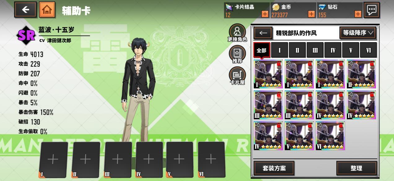 等级不高的时候没有必要去刻意收集卡套养卡(氪金土豪和欧皇可以当我没说),大约在三十五级之前随意搭配五星辅助卡即可,等级越低的时候,一三五号位的主属性影响越大,等级越高,二四六号位主属性影响越大,三十五级(看个人情况)之前多跟大佬混究极模拟战,收集光阴之鉴图鉴,卡套每星级的卡全收集即可得到钻石和卡片碎片,拿着卡片碎片就可以去商店街的卡片屋去换随机五星辅助卡,前期多种五星卡混搭即可,随缘凑套装。钻石攒起来拿去补给抽角色升星或者换体力之类的。