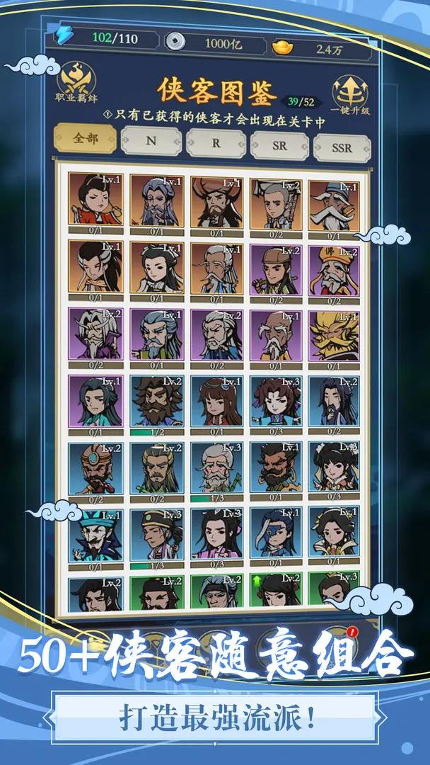 50+侠客,每个侠客都有其独特的属性能力与攻击效果