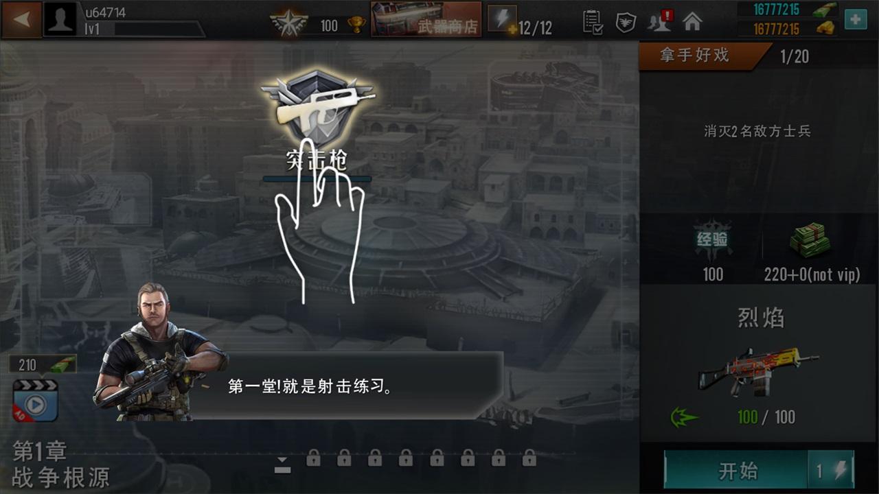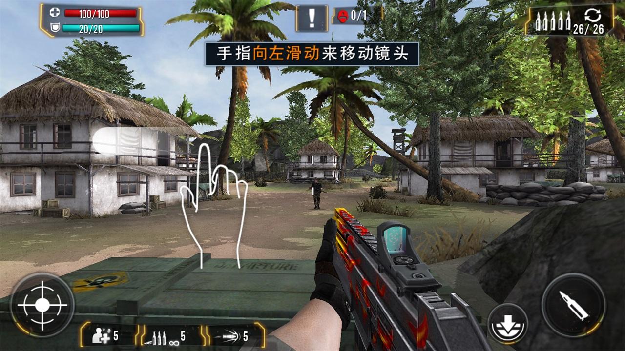 关卡开始后你的狙击手会出现在场地中间,随时待命,等着和敌人交手。