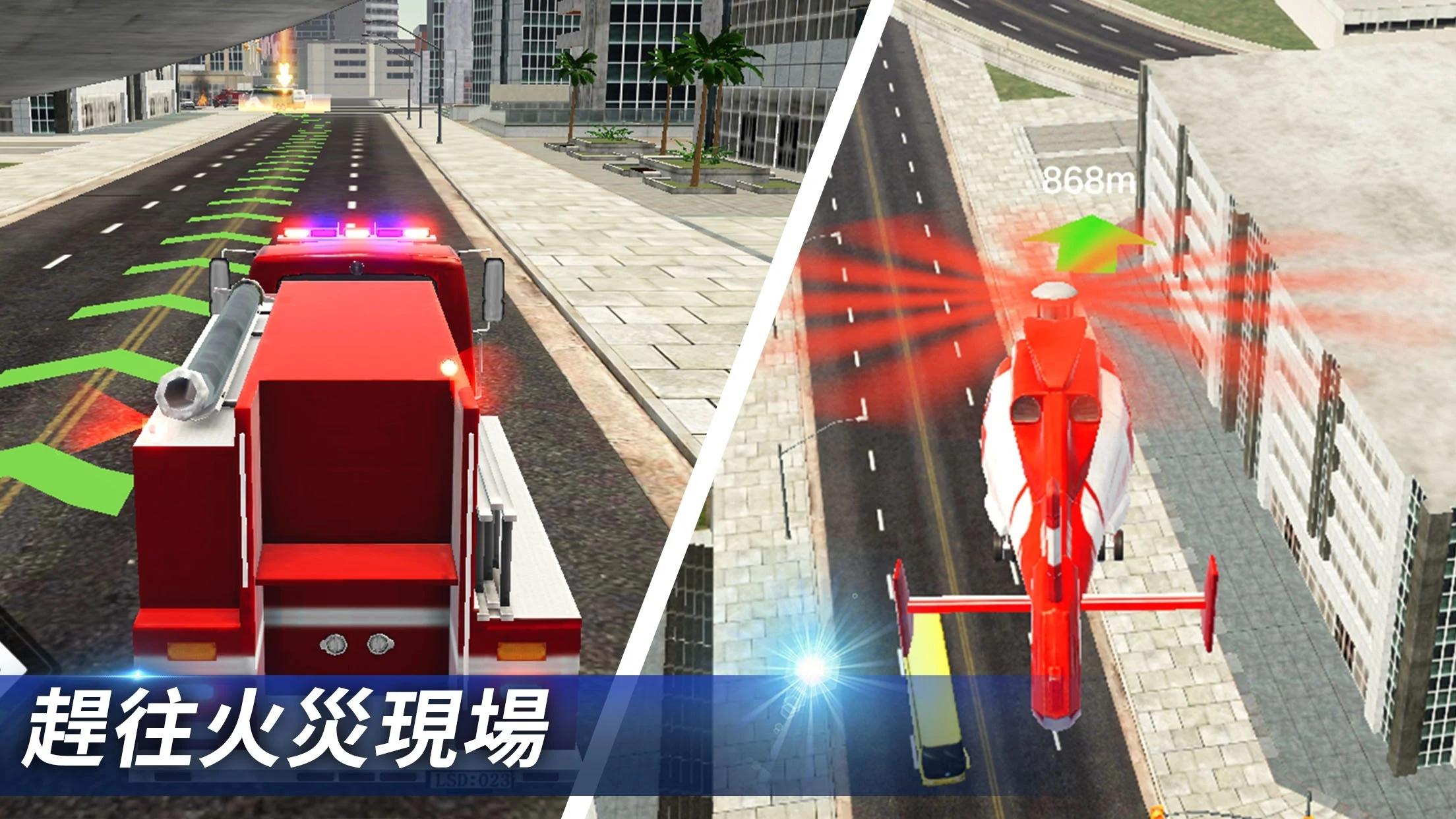 1.采用精美的3D地图,模拟真实的城市环境。玩家将置身于逼真的火灾现场,感受真实的紧急救援氛围,提供更加身临其境的游戏体验。
