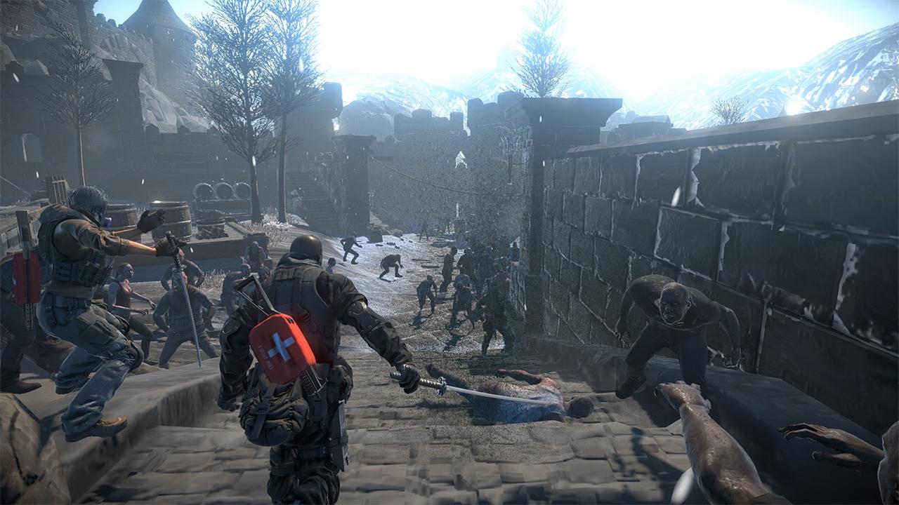 由4名玩家或者ai扮演的角色协作,一同对抗源源不断的普僵尸和变异僵尸,单打独斗在这款游戏内十分困难,任何玩家都有可能被变异僵尸瞬间击倒,需要队友救助才能继续生存。