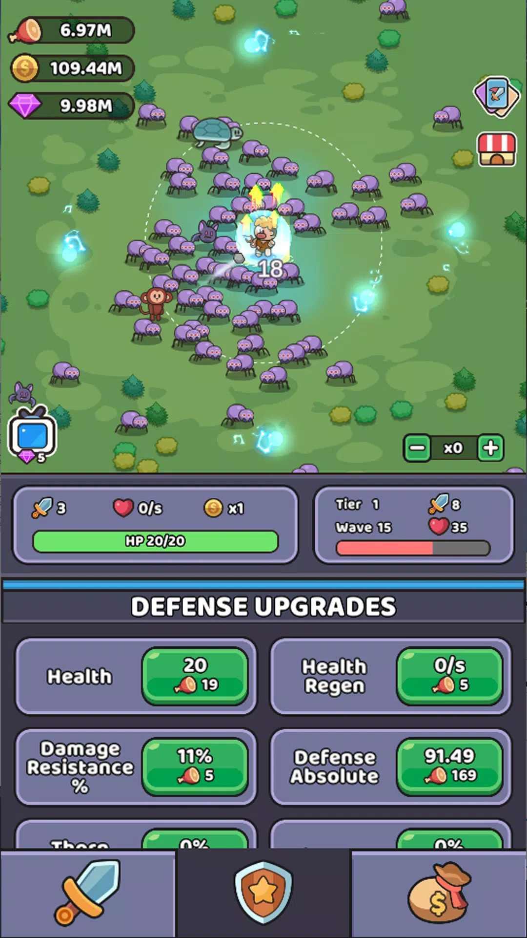 3.在战斗中不断割草斩杀敌人可以积累获得更多的金币和经验,升级可以解锁新技能