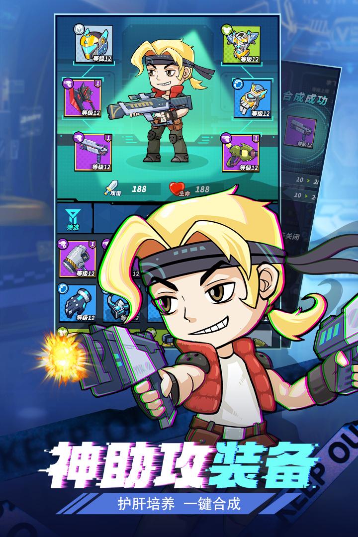《合金子弹》还添加了roguelike竞技元素,各种眼花缭乱的随机技能无限叠加,让你的每一局都有新的体验!丰富的装备系统和多样的道具选择,割草不再只有无脑刷刷刷,让策略乐趣和新鲜感伴随你的每一场战斗!