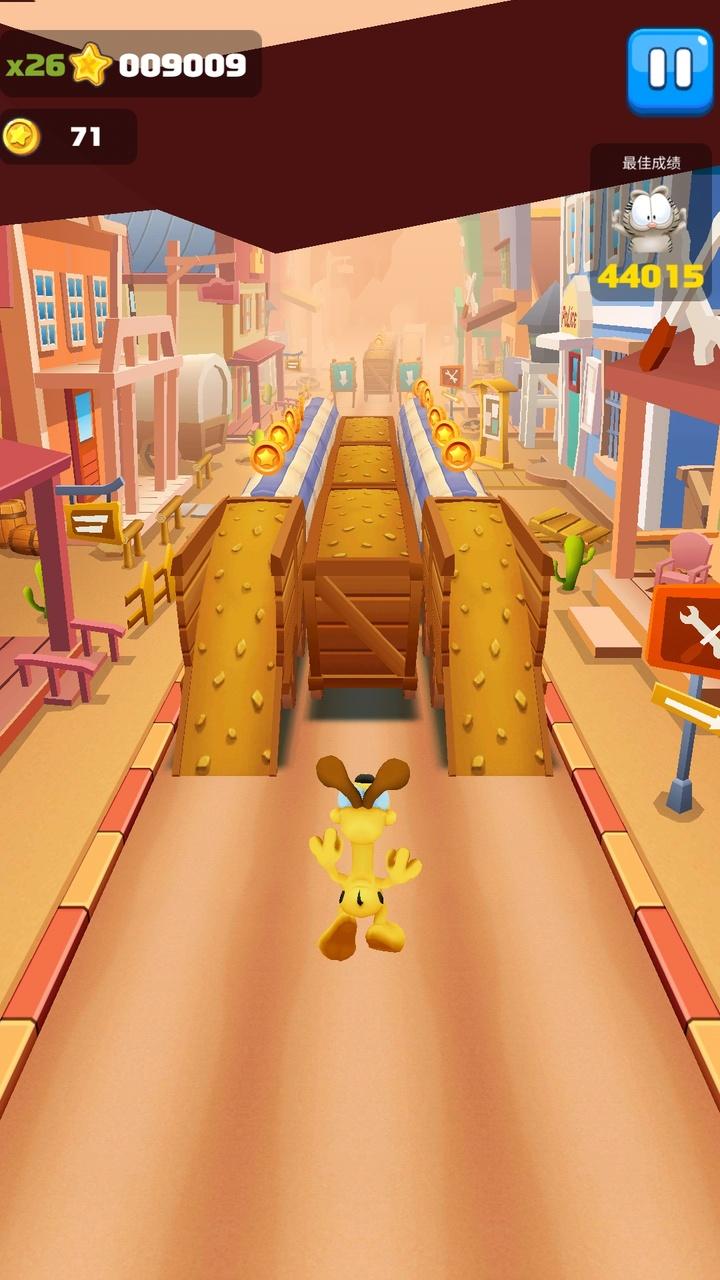 3.超萌画风下的加菲猫敏捷跑酷休闲向手机游戏,官方正版授权,给你超棒跑酷冒险。